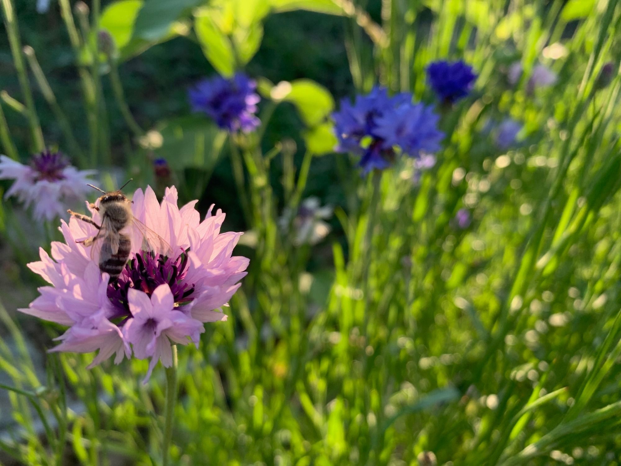 Brombeeren (Rubus fruticosus) blühen von Mai bis August und sind besonders im Unterholz und an Waldrändern verbreitet. Brombeerblütenhonig ist fruchtig und süß mit einem leicht würzigen Nachgeschmack. Blühende Heckenpflanzen wie Liguster (Ligustrum spp.) bieten im Sommer eine wichtige Nektarquelle. Der Honig hat einen milden, leicht herben Geschmack mit einem blumigen Abgang. Reichlich Nektar liefern auch die leuchtend blauen Kornblumen (Centaurea cyanus), die von Juni bis August blühen. Kornblumenhonig ist mild und süß mit einem leichten, blumigen Aroma. Weiß-Klee (Trifolium repens) blüht den ganzen Sommer über und ist eine bedeutende Nektarquelle. Weiß-Klee-Honig ist mild und cremig mit einer sanften Süße. Kräuter wie Lavendel (Lavandula spp.), die im Juni und Juli blühen, tragen ebenfalls zum Nektarangebot bei. Lavendel hat einen unverwechselbaren, blumigen Geschmack mit einem Hauch von Kräutern. Darunter mischen sich auch verschiedene Wiesenblumen, die im Sommer blühen und den Nektarfluss bereichern. Kräftige, malzige und manchmal leicht harziges Aromen liefert der Honigtau, den die Bienen an Bäumen wie Fichten, Kiefern und Eichen gewinnen.